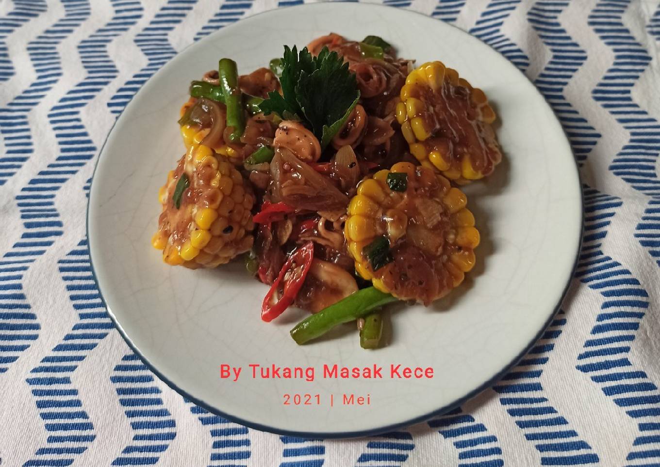 - Tambahkan jagung manis. Aduk rata, lalu masukkan cumi. Tumis hingga halus, lalu tambahkan tepung maizena yang sudah dilarutkan.